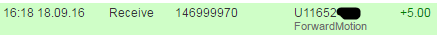 09.17.16 20:53 Account Receive +1.43 Received Payment 1.43 USD from account U11652485 to account U1046***. Batch: 146936524. Memo: API Payment. Auto.