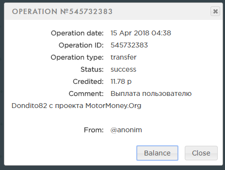 Комментарий: Выплата пользователю rvs0305 с проекта MotorMoney.Org