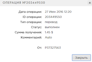 The amount of 2.02 USD has been deposited to your Perfect Money account. Accounts: U11651913->U6063ХХХ. Memo: API Payment. Auto.. Date: 15:50 29.06.16. Batch: 138061055.