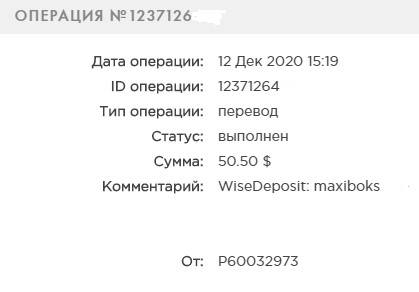 Я получил очередную выплату из проекта WiseDeposit 50.1 доллара!