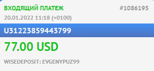 Всем привет! Под закрытие очередного адаптационного периода получила из Wisedeposit новую выплату. На этот раз я вывела 77$. Карма у меня уже 100 % и к адаптации я готова. Всем успехов!