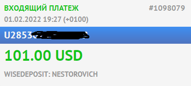 Выплата от WiseDeposit в размере 101$. Закольцовка работает и приносит доход. Работаем дальше.