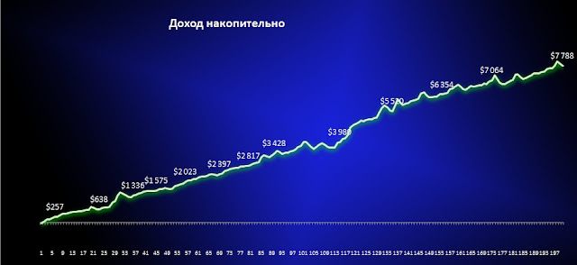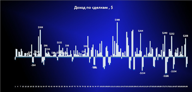 Торговля ведется по парам EURUSD и GBPUSD. Всего закрыто более 200 сделок, по которым есть информация, но судя по доходу в $9,4 тыс, а по имеющимся сделкам $7,8 тыс., следует что сделок 240-270 примерно, т.е. информации достаточно.