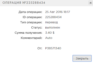 The amount of 0.25 USD has been deposited to your Perfect Money account. Accounts: U11652485->U991****. Memo: API Payment. Auto.. Date: 16:35 25.08.16. Batch: 144304281