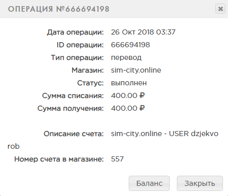 Дата оплаты: 26.10.2018 16:45:37 (UTC+3)