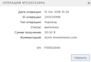 The amount of 5.5 USD has been deposited to your Perfect Money account. Accounts: U12437335->U9***. Memo: storti-investments.com. Date: 17:22 15.08.16. Batch: 143265010.