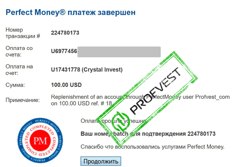 The amount of 37.2 USD has been deposited to your account. Accounts: U17431778->U6977456. Memo: API Payment. Выплата с проекта Crystal Invest.. Date: 16:00 16.08.18. Batch: 224907218.