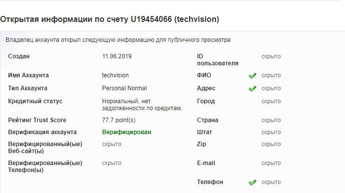 - Верифицирован, 77.7 Trust Score point(s)